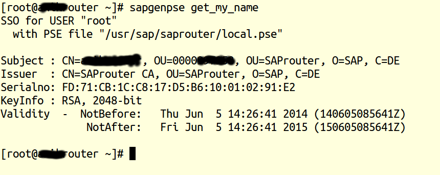 sapgenpse get_pse -v -r certreq -p local.pse "CN=hostname, OU=0000123456, OU=SAProuter, O=SAP, C=DE"